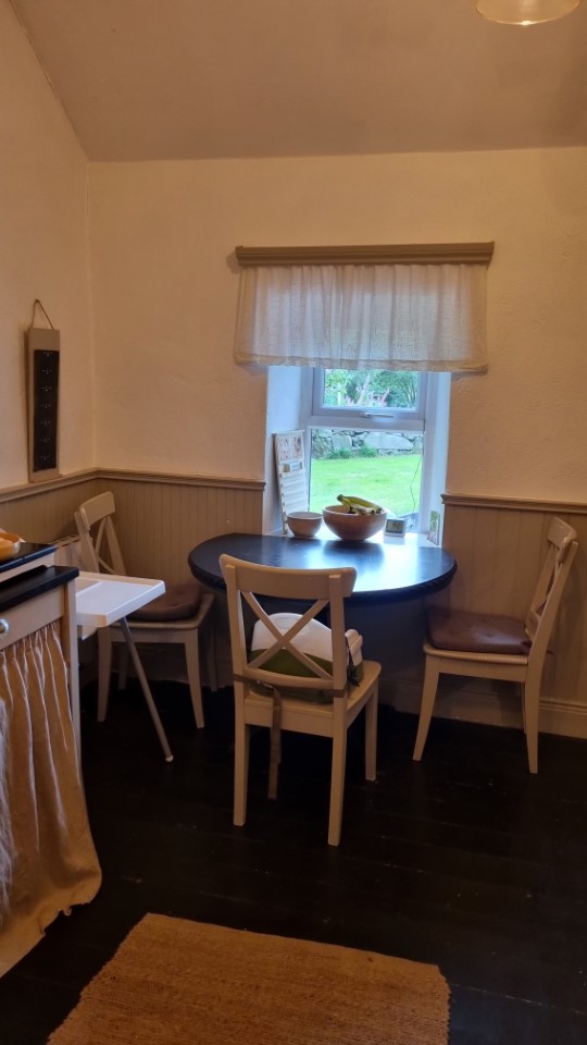 Detatched cottage with large field and garden. The cottage is 300yrs old and layout is porch,kitchen,diningroom,bathroom and hall which leads to the new extension which consists of stairs,bedroom1,hallway, dressingroom which leads off two ways, to sittingroom with french doors onto veranda and the other way off the dressing room leads onto playroom and bedroom 2 and bedroom 3 the playroom has sliding doors leading onto the wraparound veranda.